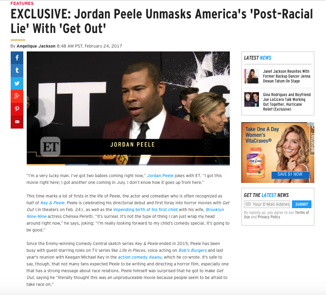 ETonline EXCLUSIVE: Jordan Peele Unmasks America's 'Post-Racial Lie' With 'Get Out&#